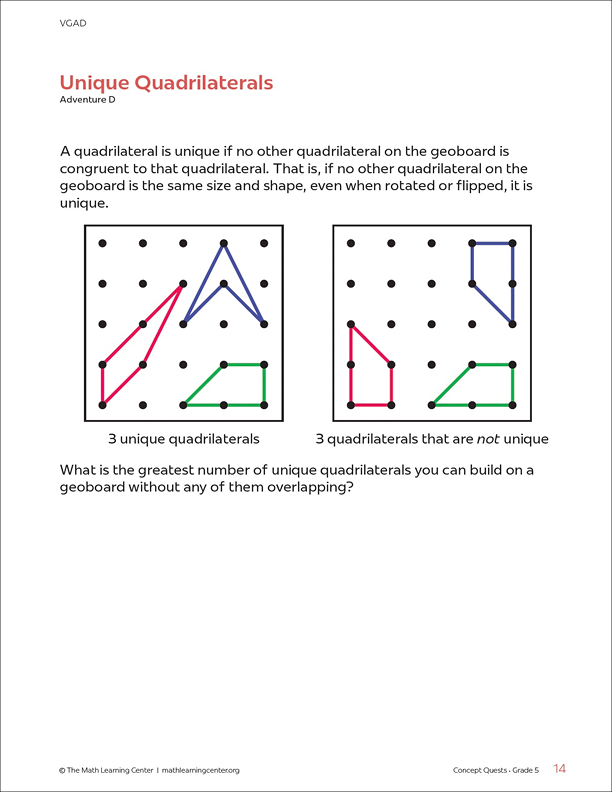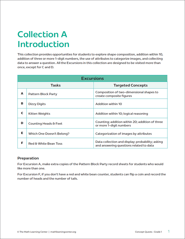 Concept Quests tasks are designed without a single solution path, encouraging students to apply what they know, test ideas, and find their own way forward. Each grade level includes thoughtfully crafted resources, like overview guides and an answer key with background information, for instructional planning or reviewing student work.